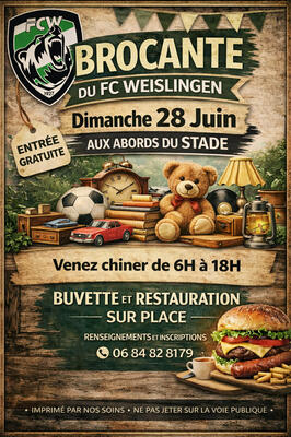 Après une année de pause, le fc weislingen reprend le flambeau du comité de gestion pour organiser la brocante aux abords du stade et de la salle polyvalente.