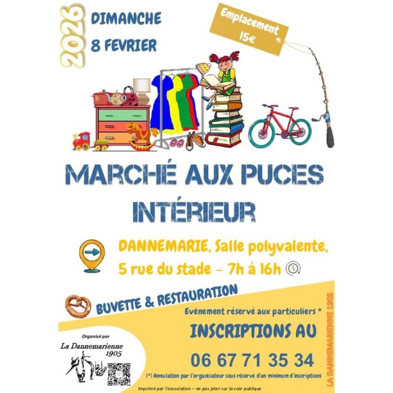Marché aux puces d'intérieur dimanche 8 février 2026 à la salle polyvalente de dannemarie.