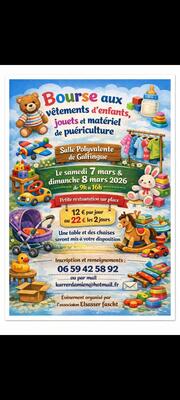 Bourse aux vêtements, enfants, puériculture et jouets.
