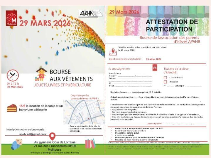 Bourse aux vêtements, jouets, livres et puériculture