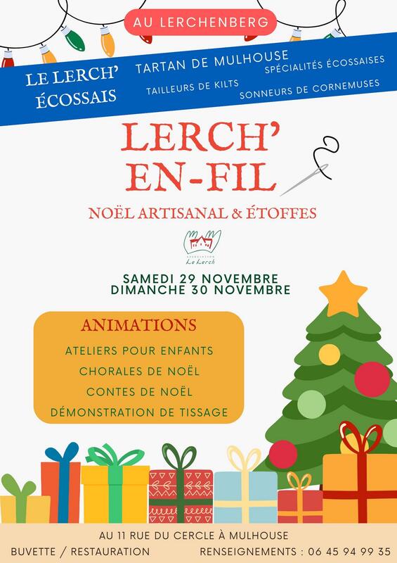 Le lerchenberg vous invite à découvrir son marché de noël d'artisanat local qui aura lieu le week-end du 29 et 30 novembre, au 11 rue du cercle à mulhouse, le samedi de 11h à 19h et le dimanche de 10h à 17h. Profitez également d'animations autour de noël ainsi que de la mise à l'honneur de l'ecosse tout au long du week-end.