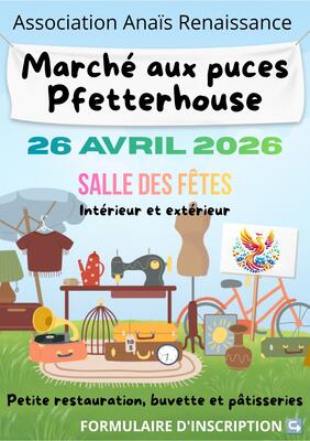 notre association anaïs renaissance organise son 2ème marché aux puces à pfetterhouse.