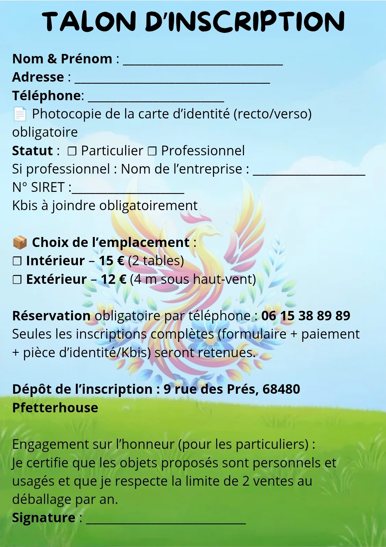 Pour tout renseignement ou inscription, merci de nous contacter numéro indiqué dans l’annonce.