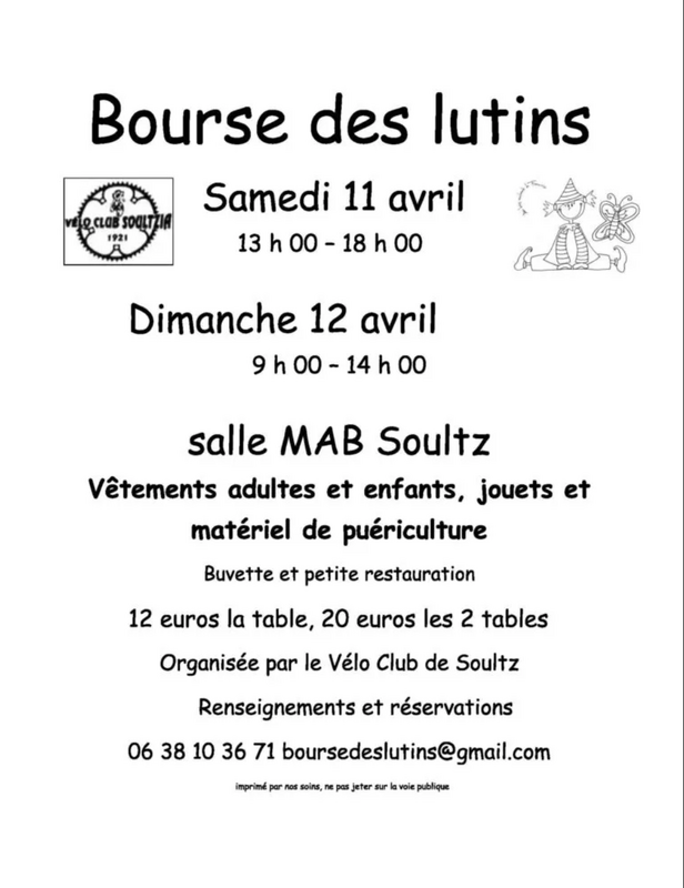 Bourse vêtements adultes et enfants, jouets et puériculture organisée par le vélo club de soultz