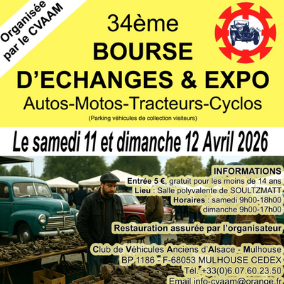 34ème bourse d'échanges - expo autos, motos, tracteurs, cyclos.