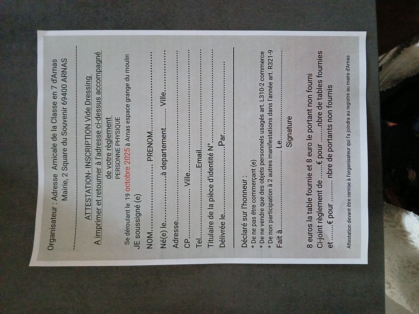 la fiche Événement