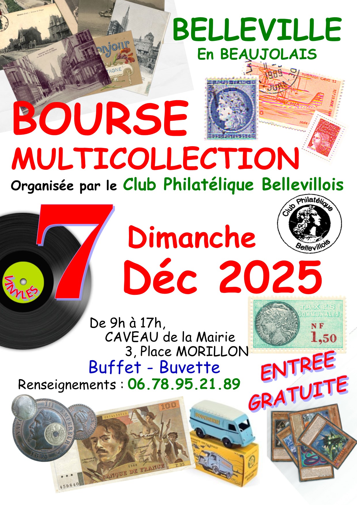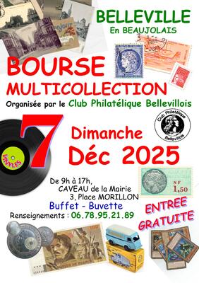 8ème édition de la "bourse multicollection" du club philatélique bellevillois qui se déroulera le dimanche 7 décembre prochain.