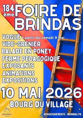 Retrouvez la 184ème édition de la foire de brindas dans les rues du centre-bourg et à la salle du conseil municipal le dimanche 10 mai ! Avec ses nombreux stands éclectiques, son vide-grenier et ses animations, vous êtes sûrs de passer un bon moment en famille et entre amis. Les enfants pourront profiter de la ferme pédagogique, de balade en poney placette des ormeaux proposée par l'association brindasienne cheval et partage et de pleins d’autres surprises. La fanfare "lapatam'fony bandas" plein d'énergie rythmera la fête.