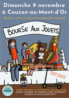 Bourse aux jouets de couzon-au-mont-d'or: jouets, jeux, articles de puériculture et habits jusqu'à 12 ans à découvrir sur place.