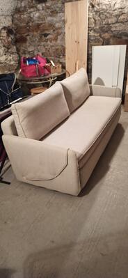 (pare-baignoire (neuf dans carton), canapé convertible (dossier et accoudoirs démontables par clips), 2 tables de salle à manger ou cuisine, 4 chaises)