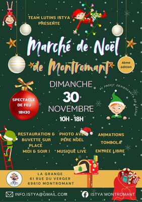Marché de noël de montromant – 4ᵉ édition dimanche 30 novembre 2025 – de 10h à 18h montromant (69610) l’association istya et sa joyeuse team lutins vous invitent à plonger dans la magie des fêtes lors du marché de noël de montromant, un rendez-vous chaleureux et familial devenu incontournable dans les monts du lyonnais au programme : de nombreux exposants et artisans locaux musique live et animations pour petits et grands présence du père noël pour le bonheur des enfants croziflette des monts à déguster sur place grande tombola avec de nombreux lots à gagner un spectacle de feu à 18h30 à ne surtout pas manquer !!! Ambiance conviviale, gourmandises, artisanat et féérie seront au rendez-vous pour cette 4ᵉ édition pleine de surprises