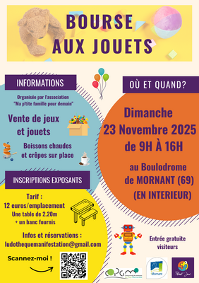 Bourse aux jouets organisée au profit de la ludothèque planet'jeux de mornant.