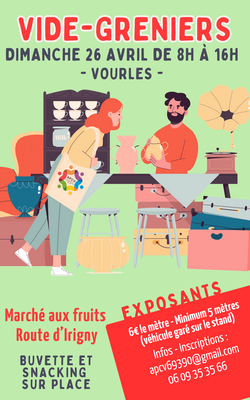 L’association vous donne rendez-vous pour son grand vide-grenier annuel le dimanche 26 avril 2026 au marché de vourles (anciennement le marché aux fruits).