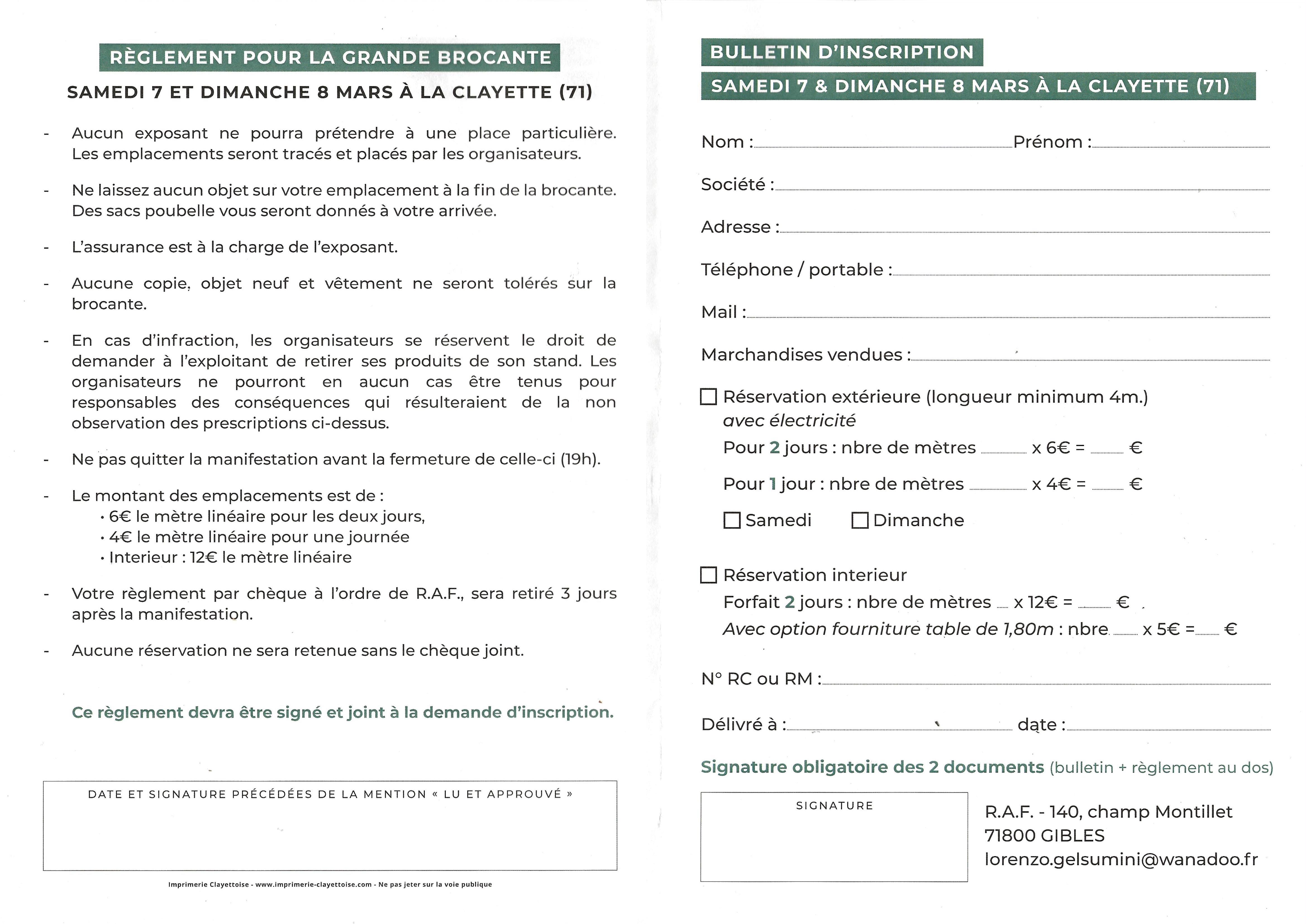Possibilité de s'installer le vendredi soir à partir de 16h. Pour exposants sur 2 jours.