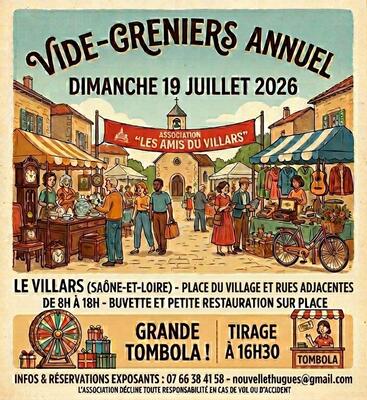 L’association les amis du villars organise son fameux vide-greniers le dimanche 19 juillet 2026 de 8h à 18h sur la place de l’église du village (situé à 3 km au sud de tournus) et ses rues adjacentes.