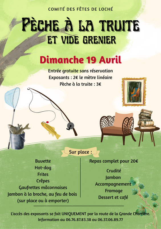 Vide-grenier de printemps du comité des fêtes de loché et pêche à la truite dans le lavoir du village !