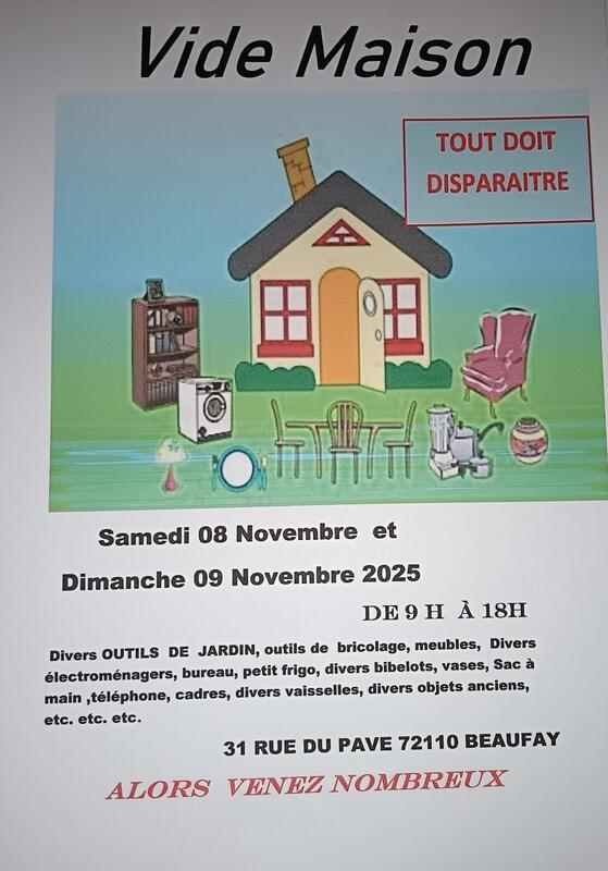 Divers outils de jardin, outils de bricolage, meubles, divers électroménagers, bureau, petit frigo, divers bibelots, vases, sac à main ,téléphone, cadres, divers vaisselles, divers objets anciens, etc. Etc.