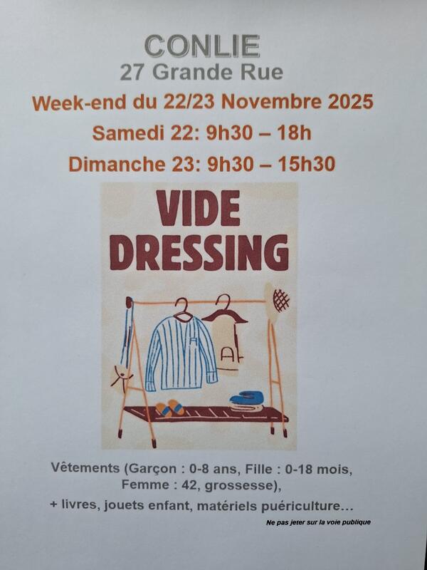 Vide dressing proposant vêtements enfants garçon 0/8 ans et vêtements fille 0/18mois ; grossesse 42 ; chaussures enfants ; matériel puériculture ; jouets ; livres ; décoration ; etc...
