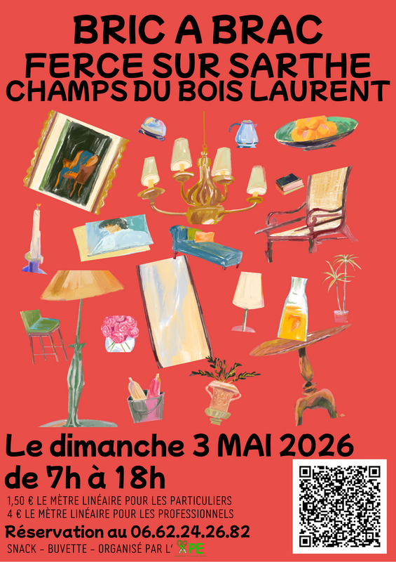 Si vous souhaitez participer, vous pouvez aussi vous inscrire via hello asso : https://www.helloasso.com/associations/association-des-parents-et-amis-de-l-ecole-de-ferce-sur-sarthe/evenements/bric-a-brac