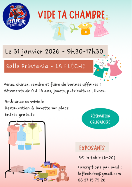 Venez vendre, chiner et faire de bonnes affaires. A la recherche d'articles de puéricultures, de jouets ou encore de vêtements. La flèche basket club vous attend !