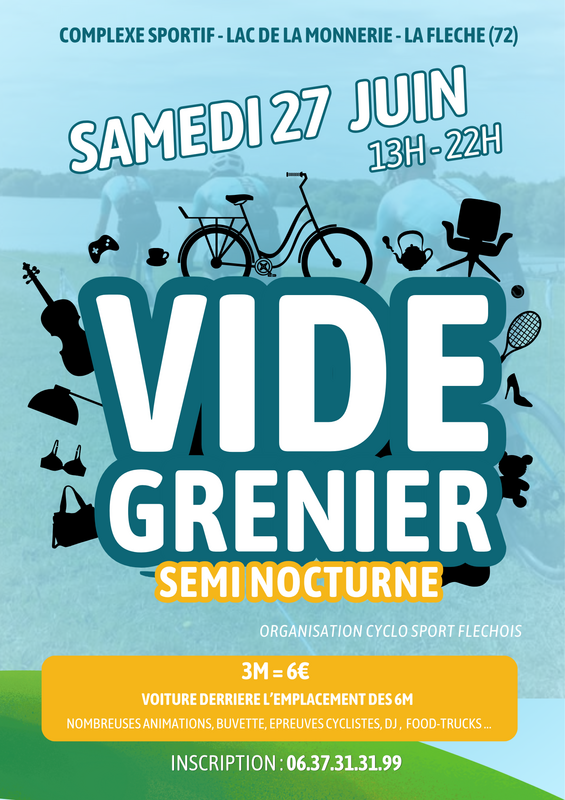 dans le cadre d'une fête locale avec de nombreuses animations (courses cyclistes, food trucks, dj, ...) qu'au lac de la monnerie à la flèche aura lieu ce vide grenier !!