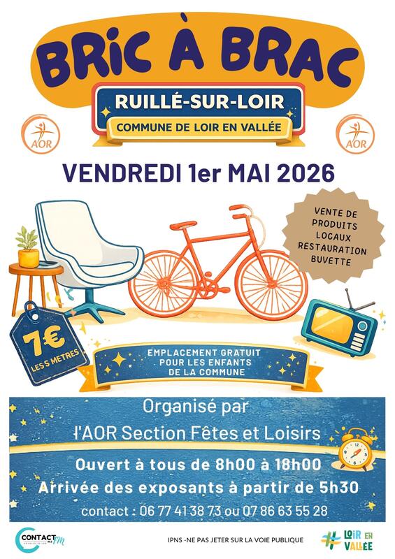 L’aor fêtes et loisirs a le plaisir de vous retrouver pour son bric-à-brac du 1er mai.