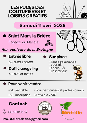 Venez exposer pour vendre que ce soit du tissu, du fil des machines a coudre... Ou venir découvrir l'événement en tant que public ou vous pourrez vous restaurer et participer a deux défilés upcycling dans la journée.