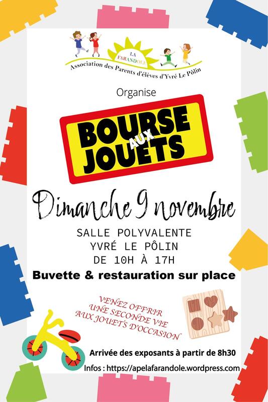 Alors venez à la bourse aux jouets organisée par la farandole, association des parents d'elèves d'yvré le polin.