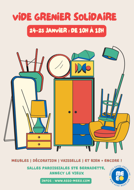 Les 24 & 25 janvier 2026, de 10h à 18h, place à la chine et à la rigolade ! Venez faire de bonnes affaires, soutenir l’association meeo, et donner une seconde vie aux objets qui attendaient tristement dans vos placards.