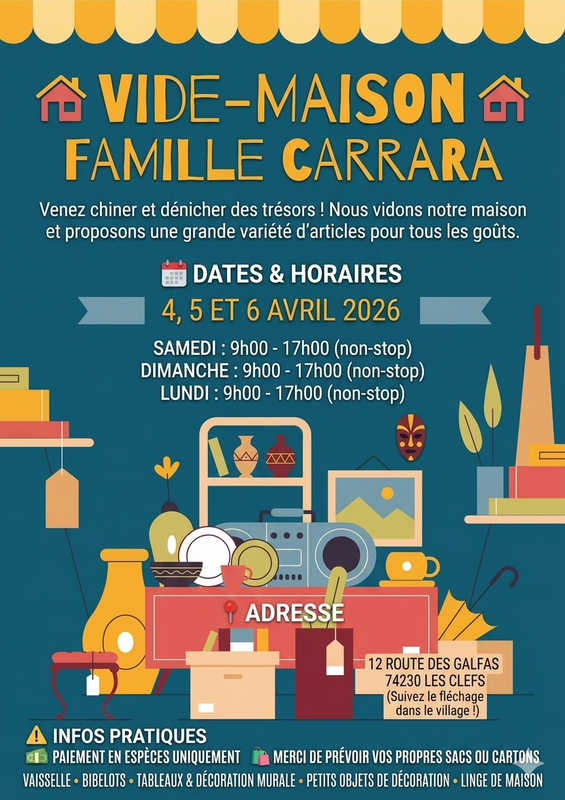 Venez chiner et dénicher des pépites à prix d'ami durant tout le week-end de pâques. Nous vous accueillons du samedi 4 au lundi 6 avril 2026 pour une vente riche en bonnes affaires !