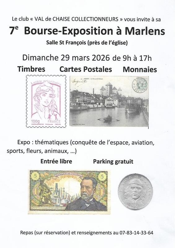 L'association "val de chaise collectionneurs" organise le dimanche 29 mars à marlens (74210 - val-de-chaise) sa bourse annuelle multi-collections.