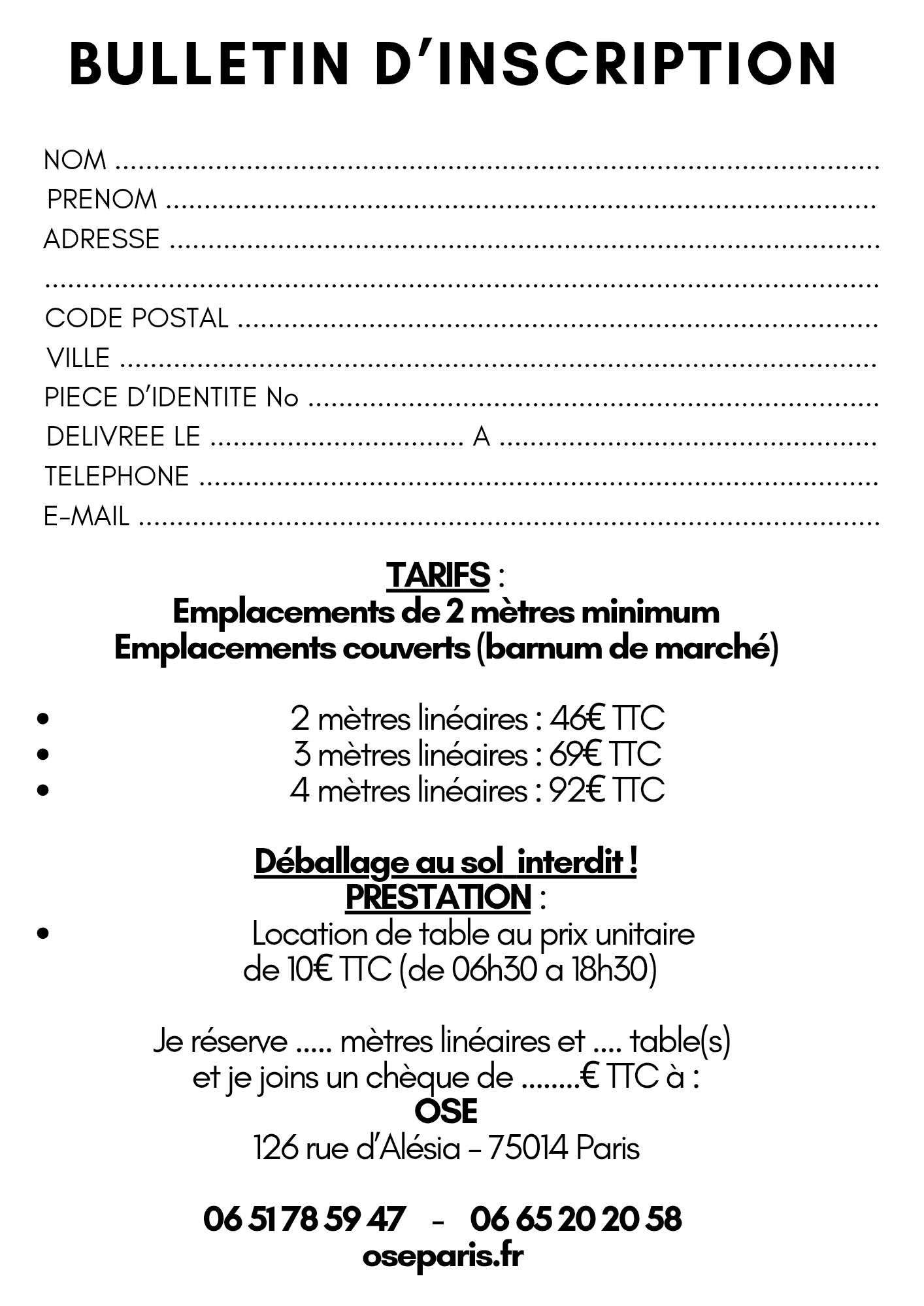 Inscriptions en ligne sur notre site oseparis.Fr.