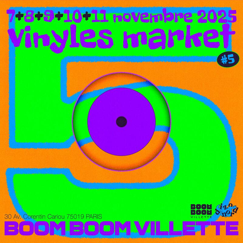 5-4-3-2-1 €uro ! 5ème "vinyles market à boom boom villette" par dizonord à l'accueil du magnifique lieu de loisirs, bar et food market jouxtant la cité des sciences ! La vente de vinyles se déroulera à l'entrée du bâtiment exceptionnellement sur 5 jours, en même temps que la grande vente de plantes paris 19, de 11h à 19h du vendredi 7 novembre au mardi 11 novembre 2025 inclus !