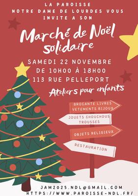 Chaque année, notre paroisse organise sa brocante/marché de noël solidaire. Vous y trouverez aussi bien des objets de seconde main que des objets neufs. Il y aura de la vaisselle, de la déco, des vêtements adultes et enfants, des objets religieux, des livres adultes et enfants, des produits du vietnam, des créations faites main à offrir (chouchous, trousses etc). Il y aura également des ateliers pour les enfants. Merci et au plaisir de vous rencontrer le 22 novembre!