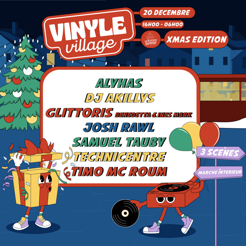 vinyle village revient samedi 20 décembre à la rotonde stalingrad pour une édition hivernale et chaleureuse, entre marché de créateurs, friperies, disquaires et soirée club jusqu’au petit matin.