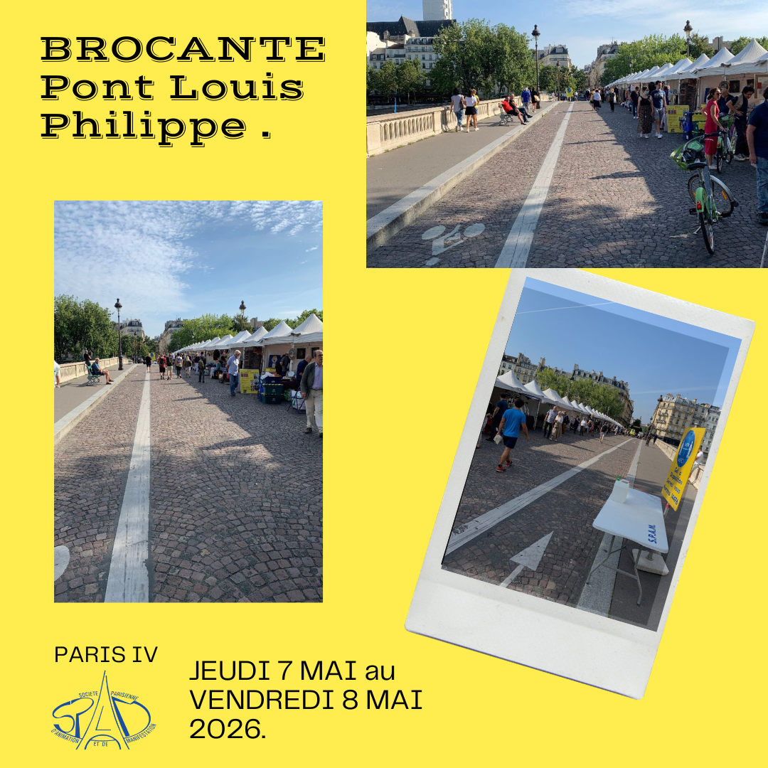 •• Brocante professionnelle pont louis philippe Jeudi 07 Mai 2026 Vendredi 08 Mai 2026 Adresse Rue Jean du Bellay 75004 Paris Partager Voir la carte Informations visiteurs Horaires visiteurs non communiqués Entrée Non communiquée Exposants De 50 à 100 Type d'exposants Professionnels Accès à l'événement Cliquez sur la carte pour l'agrandir. Organisateur Spam Téléphone E-mail Modifier la fiche Événement annulé 27218 pages vues Signaler une erreur