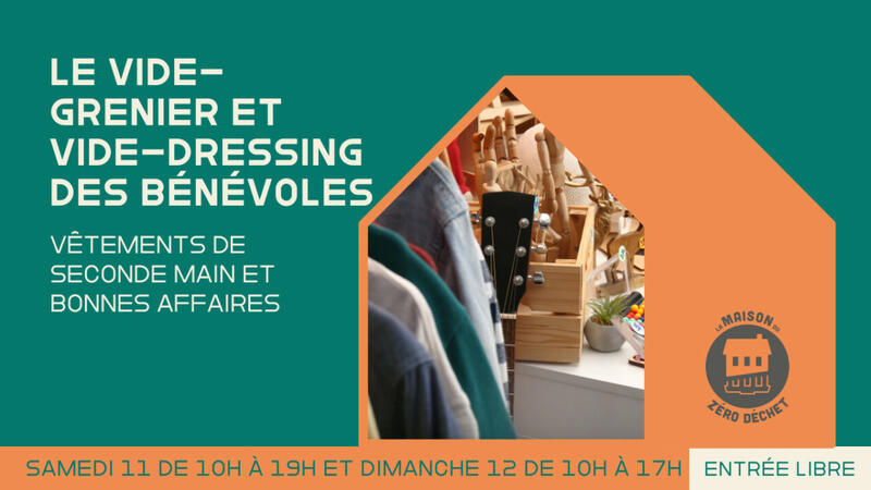 Rendez-vous le samedi 11 avril de 10h à 19h et le dimanche 12 avril de 10h à 17h à la maison du zéro déchet pour un vide-dressing et un vide-grenier proposés par nos bénévoles !