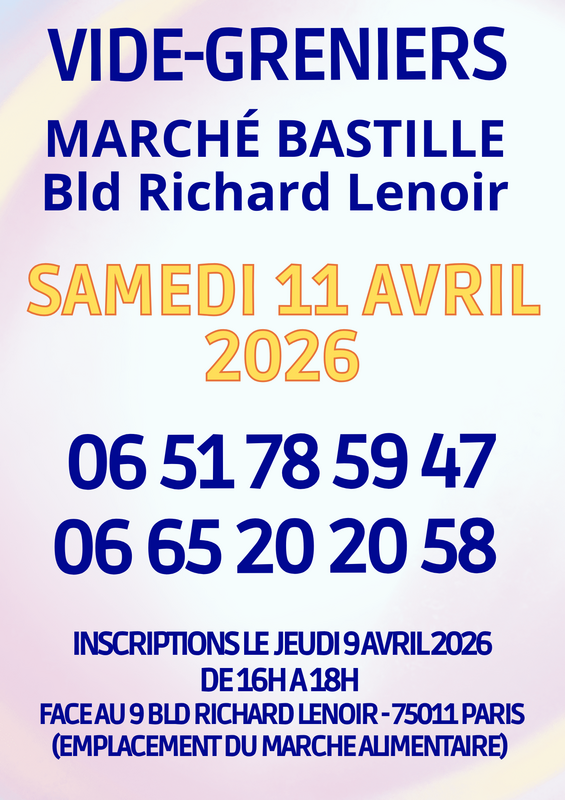 Inscriptions organisées sur place le jeudi 9 avril de 16h00 à 18h00, face au 9 boulevard richerd lenoir, paris 11ème (sur le terre-plein central, derrière la sortie de métro breguet-sabin).