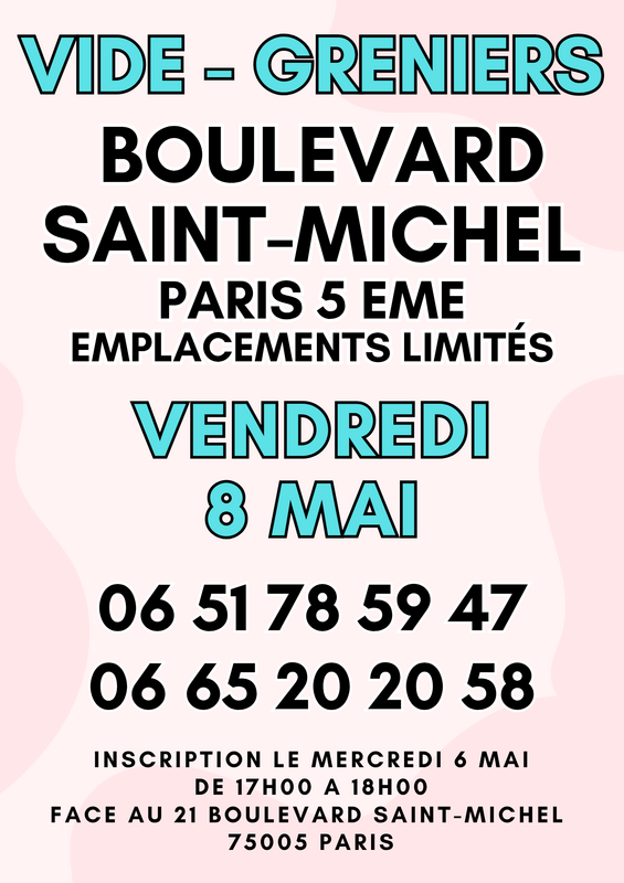 Inscriptions organisées sur place le mercredi 6 mai de 17h00 a 18h00, face au 21 boulevard saint-michel paris 5ème