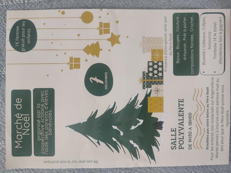 Nous organisons le premier marché de noël pour la coopérative afin d'organiser des sorties scolaires pour le enfants de la commune. Plusieurs exposants (prêt à porter, artisant, bougie , couture, crochet)buvette et ateliers manuel pour le enfants. Présence d'une photographe également pour des photos de famille.
