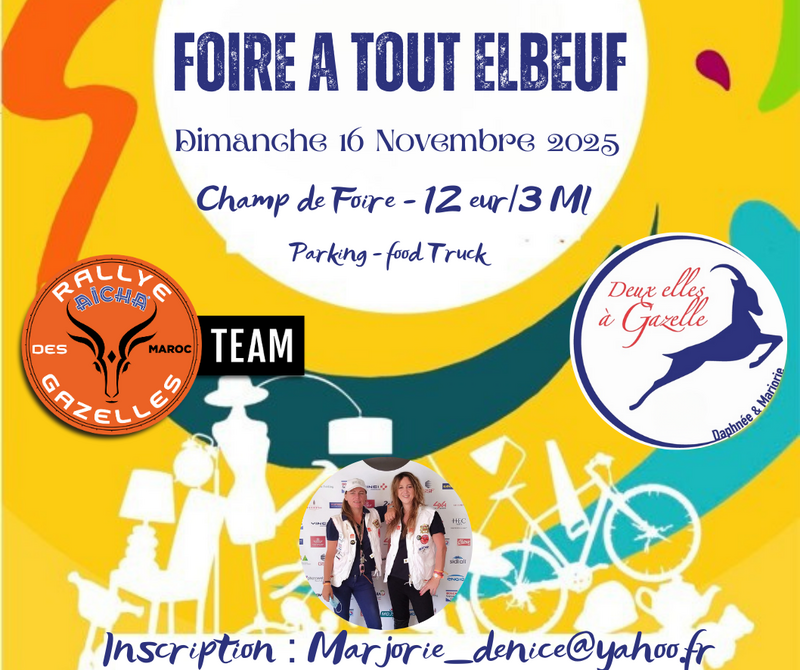 La team deux elles à gazelles, organise une grande foire à tout en ce dimanche pour soutenir notre prochaine participation aux rallyes des gazelles.