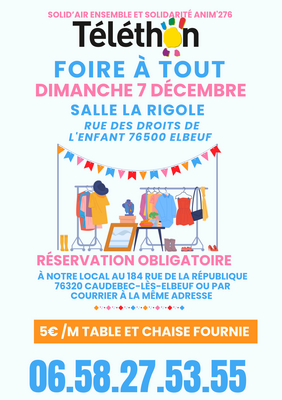 Les associations solid'air ensemble et solidarité anim'276 organisent une foire à tout au bénéfice du telethon 2025