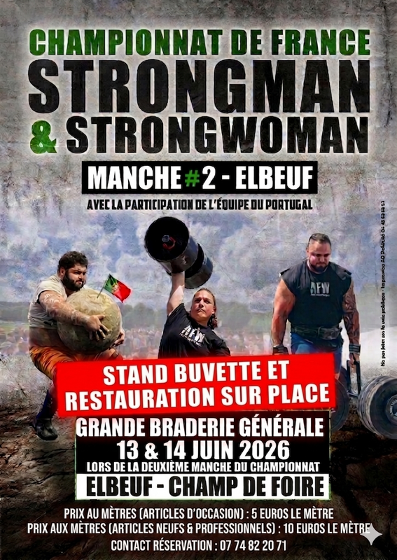 le spectacle de force brute débarque à elbeuf ! Venez assister à la deuxième manche du championnat avec la participation exceptionnelle de l’équipe du portugal !
