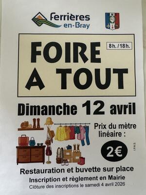 Grande foire à tout annuelle de ferrieres en bray à côté de gournay. Nombreux exposants.