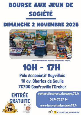 Bourse aux jeux de société – dimanche 2 novembre 2025 de 10h à 17h !