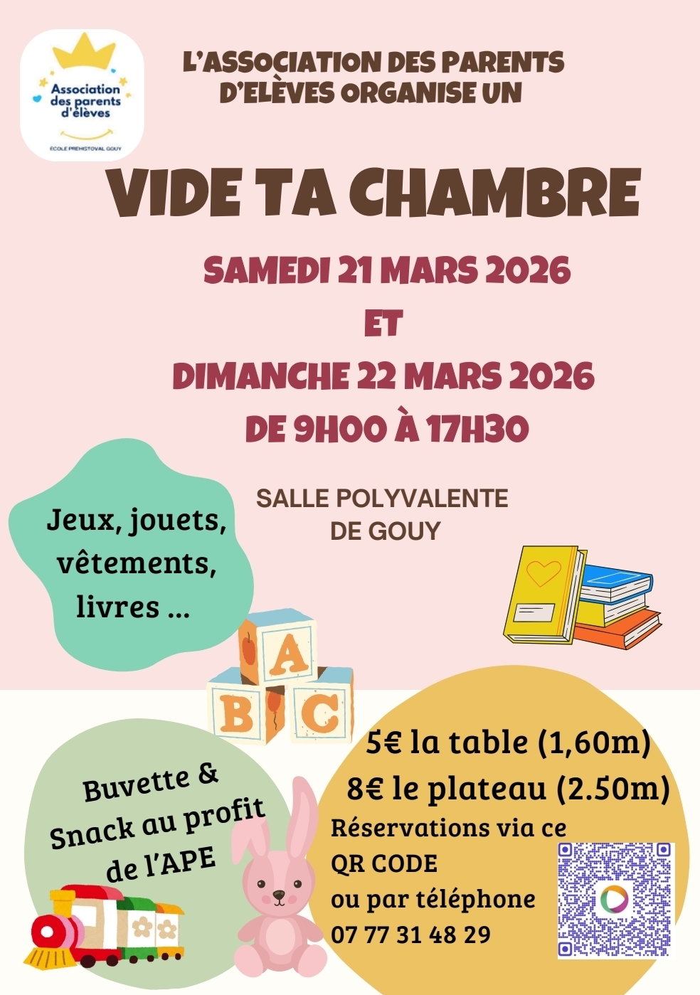 L'école de gouy organise une vente de jeux, jouets, livres, vêtements enfants et ado, matériel de puériculture... Dans une ambiance conviviale !