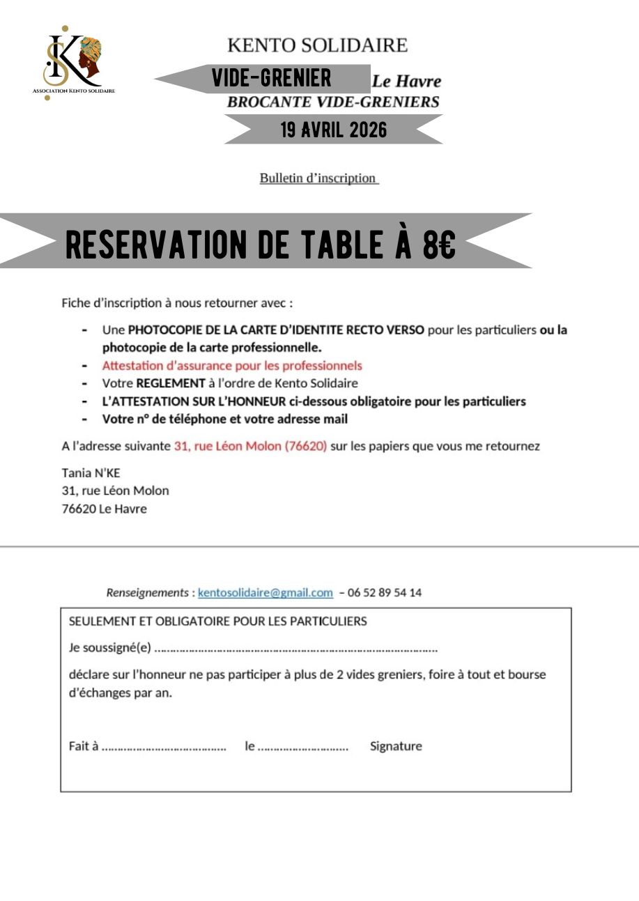 8€ la table, arrivée exposants à 07h30, buvette sur place