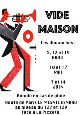Vide maison les dimanches 5, 12 et 19 avril ; 10 et 17 mai et 7 et 14 juin