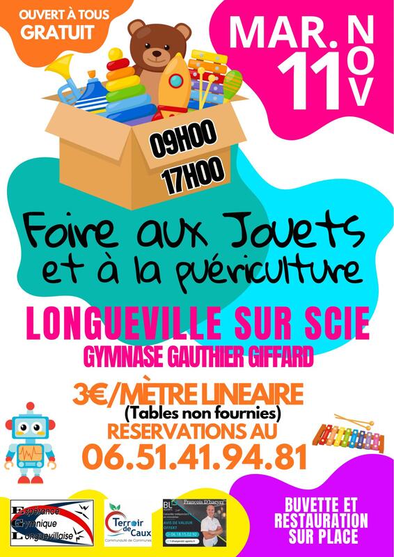 Vous cherchez de bonnes affaires avant les fêtes ou souhaitez faire un peu de tri à la maison ? Ne manquez pas la foire aux jouets et à la puériculture organisée à longueville-sur-scie, le mardi 11 novembre, de 9h à 17h, au gymnase gauthier giffard !