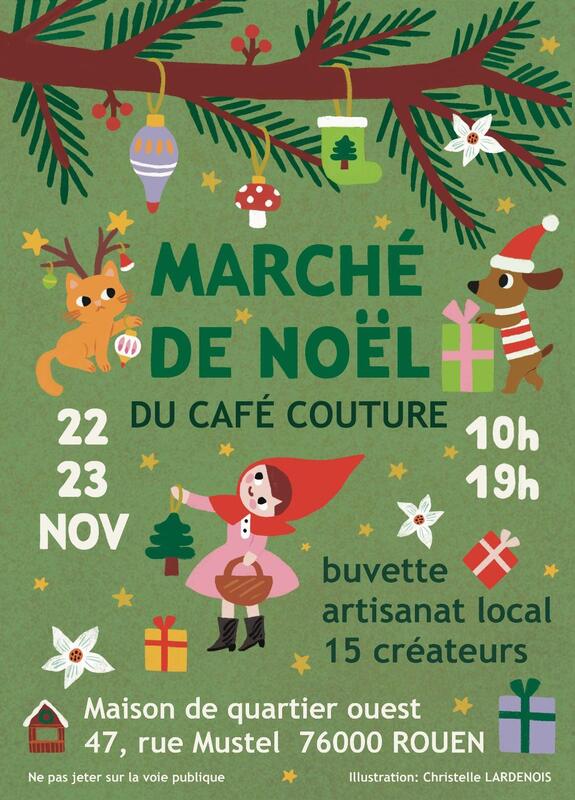 Le café couture organise, une nouvelle fois son marché de noël, qui se déroulera les samedi 22 et dimanche 23 novembre à la maison de quartier mustel à rouen.